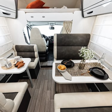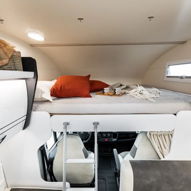 Cabina vehiculelor Glamys este concepută pentru a oferi o ambianță confortabilă și aerisită, unde confortul și spațiul se îmbină perfect. Cu o înălțime generoasă, geamuri și panouri anticondens, oferă o vedere panoramică și lumină naturală care fac fiecare moment special.