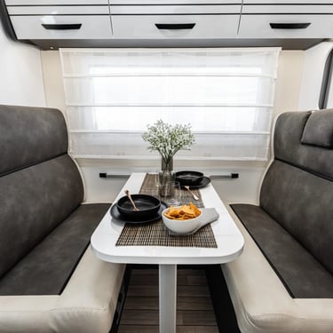 Confortabilă, primitoare și funcțională, Glamys 322 se remarcă prin atenția la detaliile estetice și utilizarea materialelor de înaltă performanță, o garanție a valorii și durabilității. Designul exterior este imediat recognoscibil, cu pereți gri atrăgători și grafică modernă, dinamică, în perfectă armonie cu nuanța elegantă de antracit a interiorului. O autorulotă care combină stilul și funcționalitatea, concepută pentru cei care caută calitate și confort fără compromisuri.