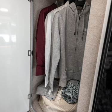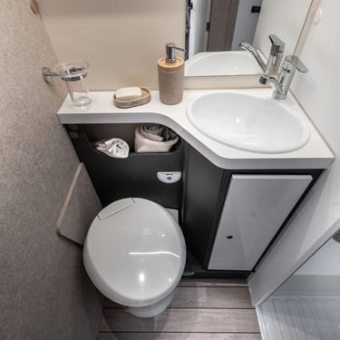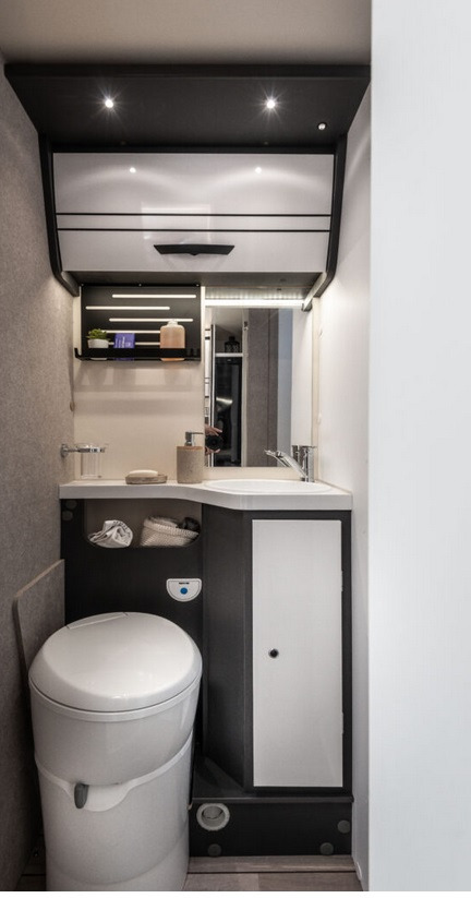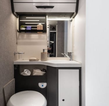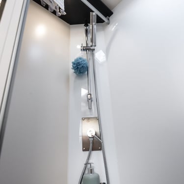 Baia este proiectată pentru a oferi confort și funcționalitate maxime. Dușul integrat este echipat cu uși pliante rigide pentru o utilizare ușoară și imediată, optimizând spațiul disponibil fără a compromite confortul. Un accesoriu de perete este inclus pentru depozitarea ușoară a obiectelor esențiale, în timp ce o bară de agățat în interiorul dușului se dovedește perfectă pentru a păstra hainele și prosoapele ordonate chiar și în timpul deplasării.